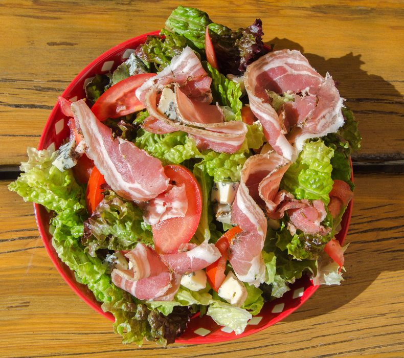 Salade, Pancette, tomates, bleu du Queyras 17,50€